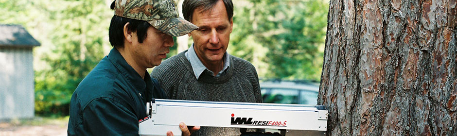 Sonic wave timers use two sensors on opposite sides of the tree trunk to measure an impact induced sound wave’s transit time across the trunk. Sound passes more quickly through solid, defect free wood. A larger than expected transit time per foot or per meter can indicate internal hidden defects.
